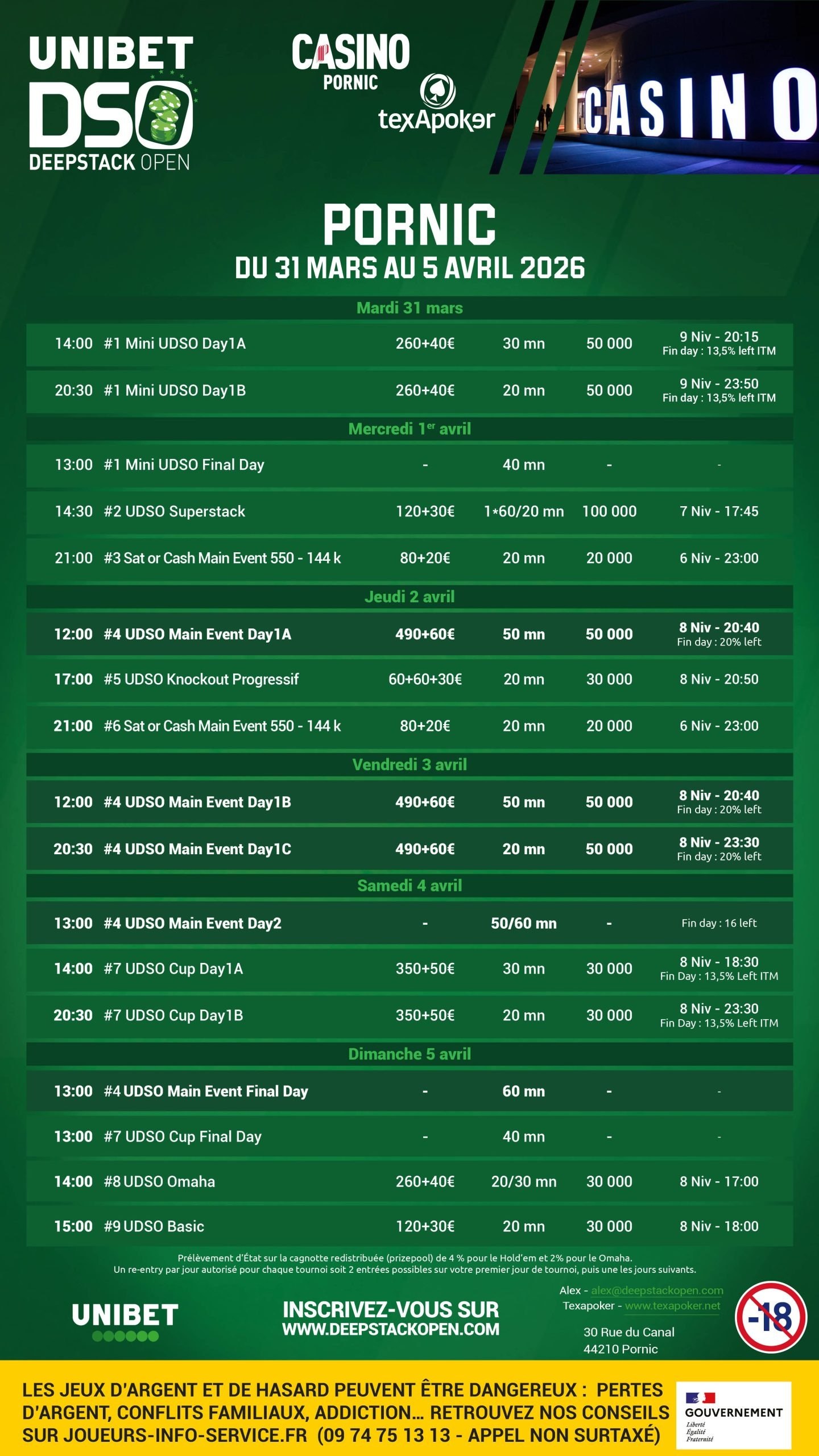 12 étapes en 2026 organisées autour d'un Main Event à 550€ avec une structure Ultra Deep, et une dizaine de tournois pensés pour tous nos joueurs.