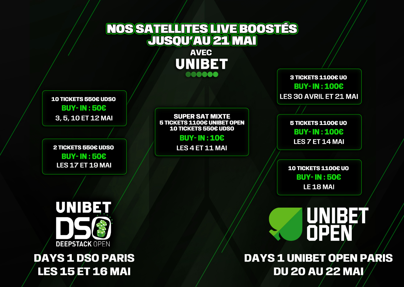 Tous les jours, des satellites vous envoient sur nos Main Event : dès 1€, gagnez vos tickets pour nos plus beaux tournois !